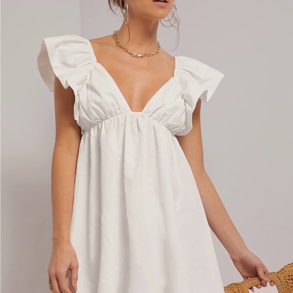 Chic mini dress with ruffle sleeves. Perfect for stylish outings.
