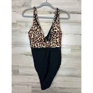Amazon Women’s 0X Black Cheetah Print One Piece Cheeky Swimsuit New