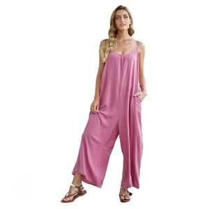 Amazon Women's Dusty Pink Poly/Spandex Jersey Knit Adj Straps Overalls Jumpsuit