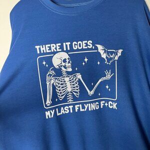 Amazon Women's Last Flying F*ck Crewneck Sweatshirt XL Blue Halloween Skeleton