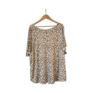 Amazon Women's V-Neck Leopard Soft Stretch Cold Shoulder Top Size XXL Beige Tan