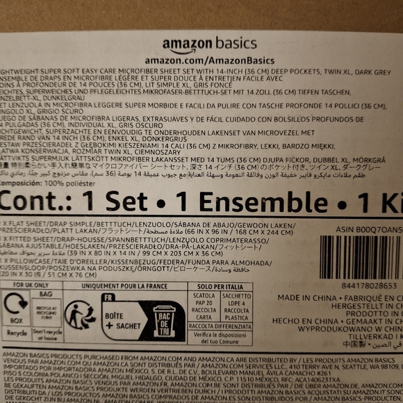 Amazon basics lightweight, super soft, easy care microfiber sheet set. 14- inch (36 CM) Deep Pockets, Twin XL, Dark Grey