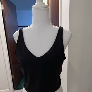 The Amazon black crop top is a stylish and versatile addition to any woman's wardrobe. This sleeveless v-neck top in size large features a solid black color and a pullover closure, making it easy to wear for casual occasions. The cropped style and strappy sleeves give it a trendy and comfortable fit, perfect for activities like yoga, the beach, or simply lounging in the sun. Easy to care for with machine washable instructions, this top is ideal for the summer, fall, and spring seasons.