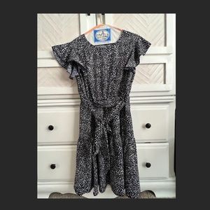Frilly sleeve, belted dress originally from amazon. Sits right above knee.