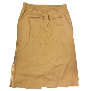 Enjoy the smart style and functionality with this cargo utility skirt. Midi to maxi length pencil skirt with a full length front and also side zippers! Large front cargo pockets, 2 rear pockets. Drawstring elastic waist. Does have stretch capability. Perfect for casual outings, dress up or down..