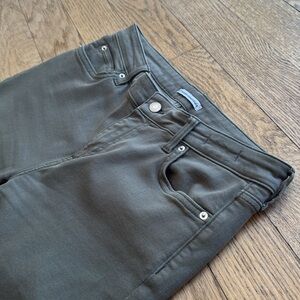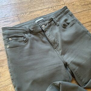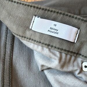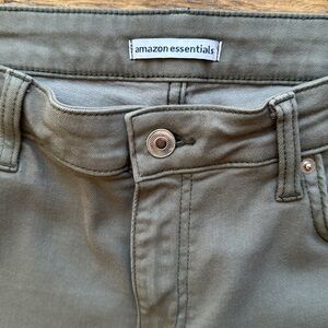Olive green pant from Amazon is skinny leg with button and zipper closure. In good condition with no rips or stains. See photos from measurements. From a non-smoking home.
