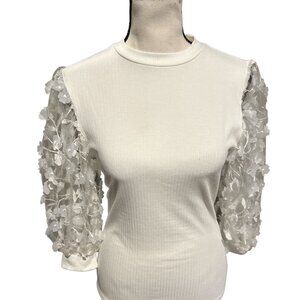 Amazon statement sleeve top with embroidery 3-D flowers– Size XS