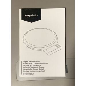Keywords: digital scale, easy clean, automatic shut off, silver scale, modern style, battery-powered, shipping weight, weighting food, AmazonBasics, new in box.