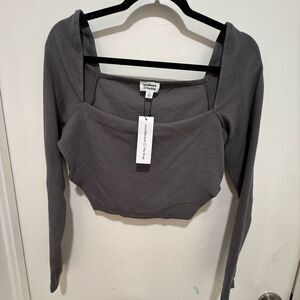 The Amazon Gray Fitted Crop Bodysuit is a chic and contemporary top that showcases a sleek bustier style. Crafted from a stretchy, form-fitting material, it offers a flattering fit with a cropped hem that sits above the waist. Its minimalist design and versatile gray color make it a perfect addition to any modern wardrobe.