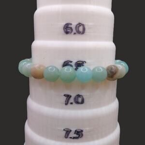This beautiful bracelet is made with 8mm Amazonite gemstones, known for their soothing energy and beautiful blue-green color.