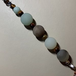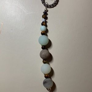 Amazonite, tigers eye and a hematite star with polished sea shell. Handmade 7 inches in length from top of key chain to bottom of shell ๐ด