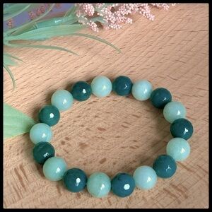 Amazonite with faceted green Agate beaded stretch bracelet