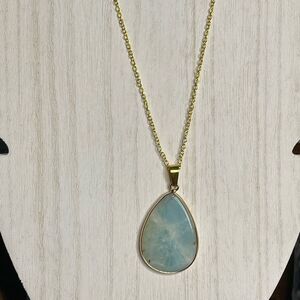 Amazonite gold tone raindrop pendant wrapped 1.5” gold tone stainless steel