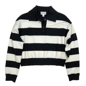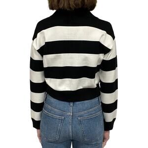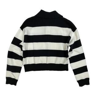 Amazon's The Drop Joan Split-Neck Polo Sweater Sz S New $50 Black White Striped
