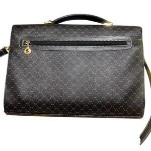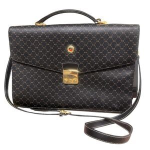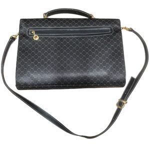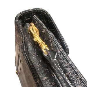 This elegant black designer Logo print briefcase is perfect for business meeting, office, and work. Crafted with attention to detail, it features a sleek design and a convenient shoulder strap. Ideal for adding a touch of sophistication to your outfit. Gold hardware with Logo print around