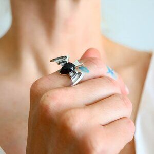 Amber Bat Ring Sterling Silver Gothic Adjustable