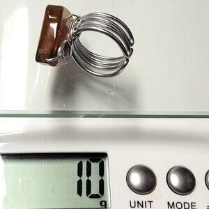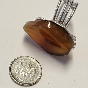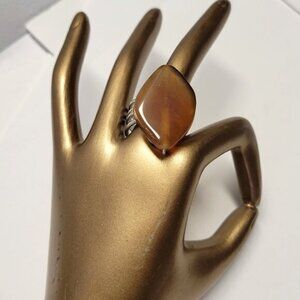 Amber Brown Rhombus Shape Ring Adjustable Band Handmade Semi Precious Ring