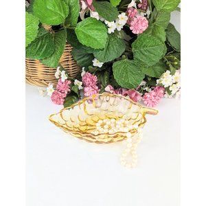 Amber Bubble Glass Trinket Dish Leaf Shape Marigold Fall Decor Candy Mint Tray