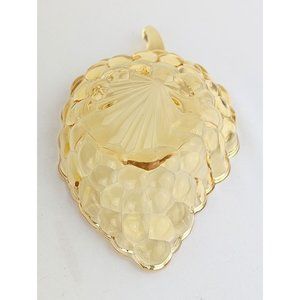 Lovely little yellow bubble glass candy or vanity dish in the shape of a leaf. Perfect addition for fall home decor. So many uses for this cute glass trinket dish. Would look lovely on a table with mints or candies, on a side table in the entryway for keys and change, on a dresser for rings and bracelets, or in the guest bathroom to hold small guest soaps. The dish measures approximately 7.25" long, 4.5" at its widest. Pristine condition with no chips, cracks or scratches. Gift worthy. Display worthy.