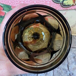 This is a set of 3 amber colored goblets in great preloved condition. Matching dessert cups are also available. Pedestal design