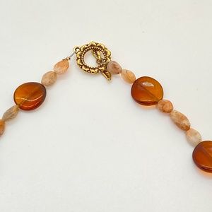 Amber Colored Glass Bead & Gold Plated Earthy Necklace