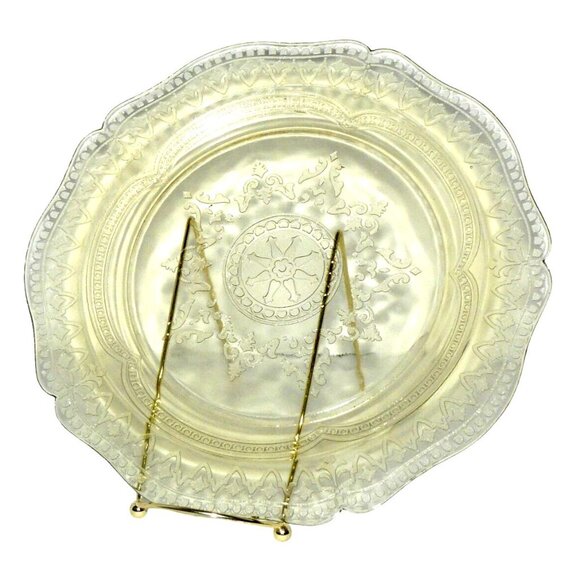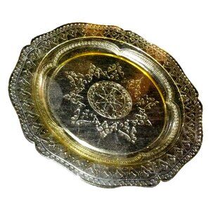 Amber Depression Glass Style Pressed Sandwich Plate Scallop Floral Etched Vintag