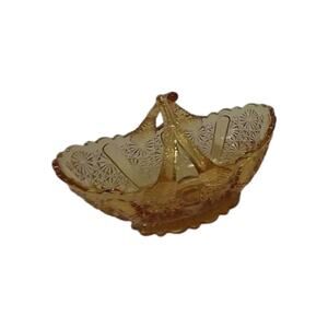 Amber Glass Basket Small Daisy Pattern Split Twig Handle Candy Dish