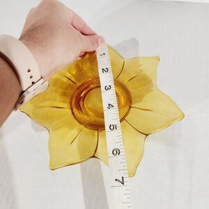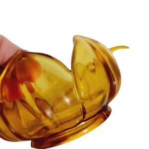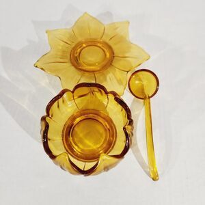 Amber Glass Condiment Jelly Sugar Dish Floral Lotus Bowl Tray Spoon Vtg *Crack