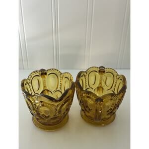 Amber Glass Cream and Sugar Moon and Stars Pattern
