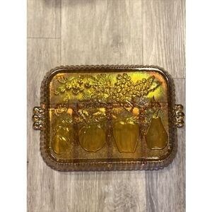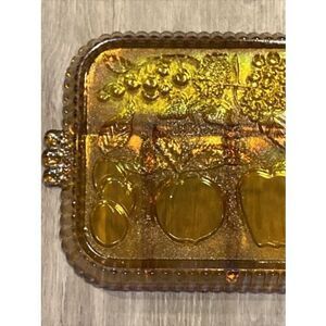 Amber Glass Divided Serving Tray Dish 12”X 8 1/2” 5 Separations Carnival