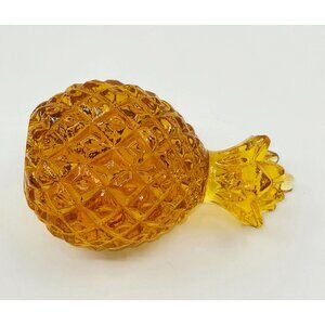 Amber Glass Pineapple Figurine Paperweight 4.5" Decorative Ornament Vintage Styl