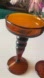 Elegant amber glass candle holders with a unique design. Perfect for adding a touch of sophistication to any space.
