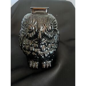 Amber Glass Wise Old Owl Glass Piggy Bank 7”tall Vintage Coin A8