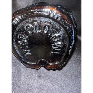 This vintage glass bank in the shape of a wise old owl is made by Libbey, a trusted brand in the glassware industry. It has a beautiful amber color and stands at 7 inches tall, making it the perfect addition to any collection. The bank is original and has not been modified, with its original owl design intact.