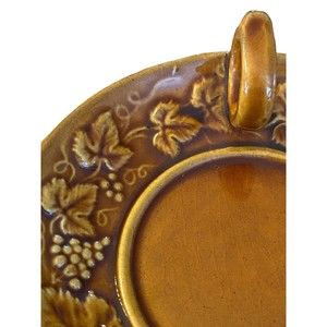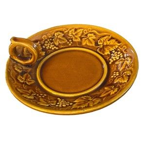 Amber Glazed Grapes & Leaves Candle Plate Holder Portugal