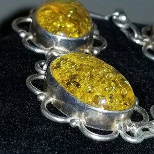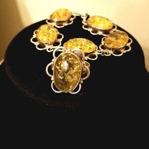 This stunning jewellery set features a beautiful combination of silver-tone settings and yellow amber. Perfect for adding a touch of elegance to any outfit.
