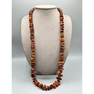 Amber Necklace Hand Knotted and Graduated Necklace Chunky Nuggets 30 inch Long