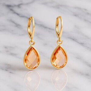 Luxe Amber Rose Crystal Drop Hoop Earrings.