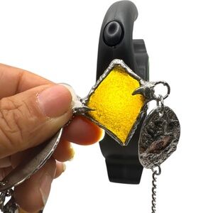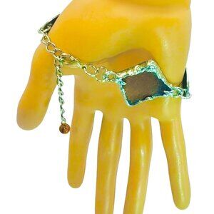This artisan bracelet combines amber sea glass with mixed metals, offering a unique blend of silver and copper. Its adjustable design ensures a comfortable fit, making it versatile for various wrist sizes. The intricate detailing highlights craftsmanship, adding an artistic touch to any ensemble.
