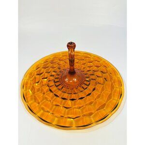 Amber Serving Tray With Handle | Indiana Colony Cubist Bube Diamond Pattern 12"