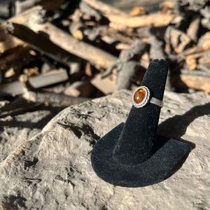Beautiful amber ring set in a sleek sterling silver band. Perfect for adding a touch of sophistication to any outfit. Size 5 1/2.