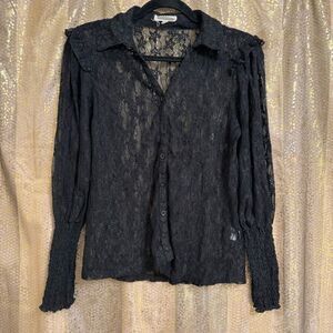 Amber Skies Black Lace Witchy Goth Button Up Sheer Long Sleeve Top Small