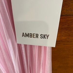 Amber SKY/ NWT/ Size L/ layered tulle fabric, giving it a soft and flowing look. The small bows and beads add a delicate and decorative touch. The color is a light pastel pink.