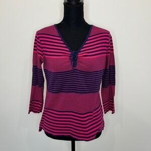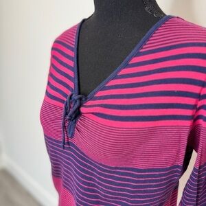Amber Sun Blue and Pink Stripe Front Tie Lightweight Sweater (Medium)