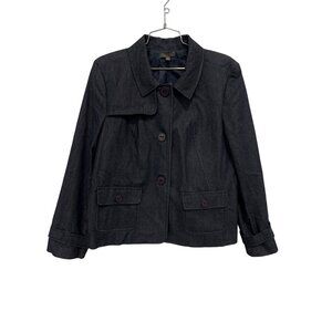 This Amber Sun women's jacket in XL combines a dark wash denim exterior with a fully lined polyester interior for style and comfort. Features button front and flap pockets.