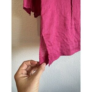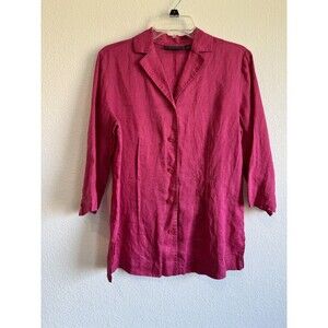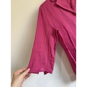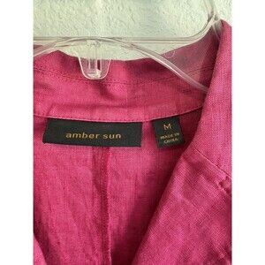 Amber Sun Women's Pink Linen Button Down Shirt 3/4 Sleeve Size Medium