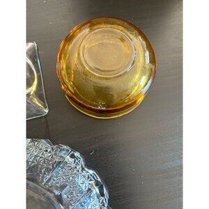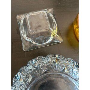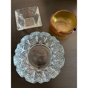 Amber Thick Clear Crystal Glass Set Of 3 Cigarette Ashtray Decorative Vintage