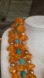 Features vibrant orange and turquoise beads for a unique look with authentic golden tone pearls.