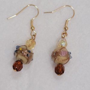 Amber and cream glass bead necklace and earrings