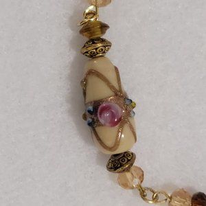 This beautiful necklace is 18" long. The set is in very good condition. Some of the beads are hand blown glass.